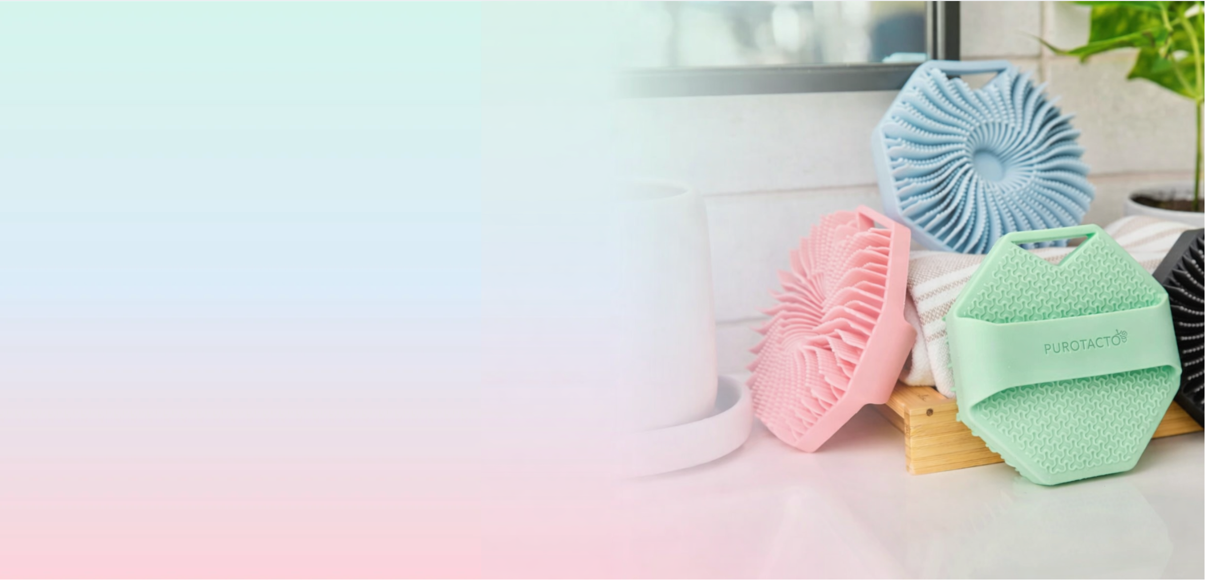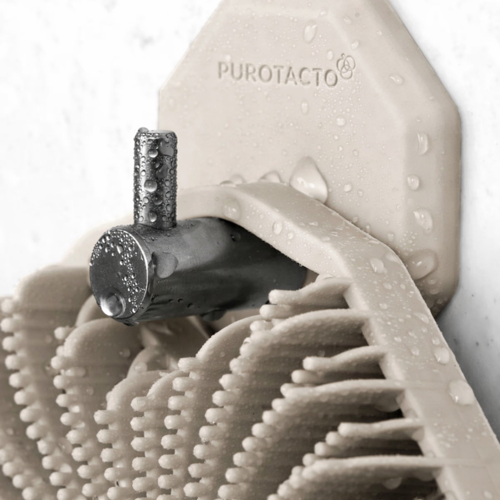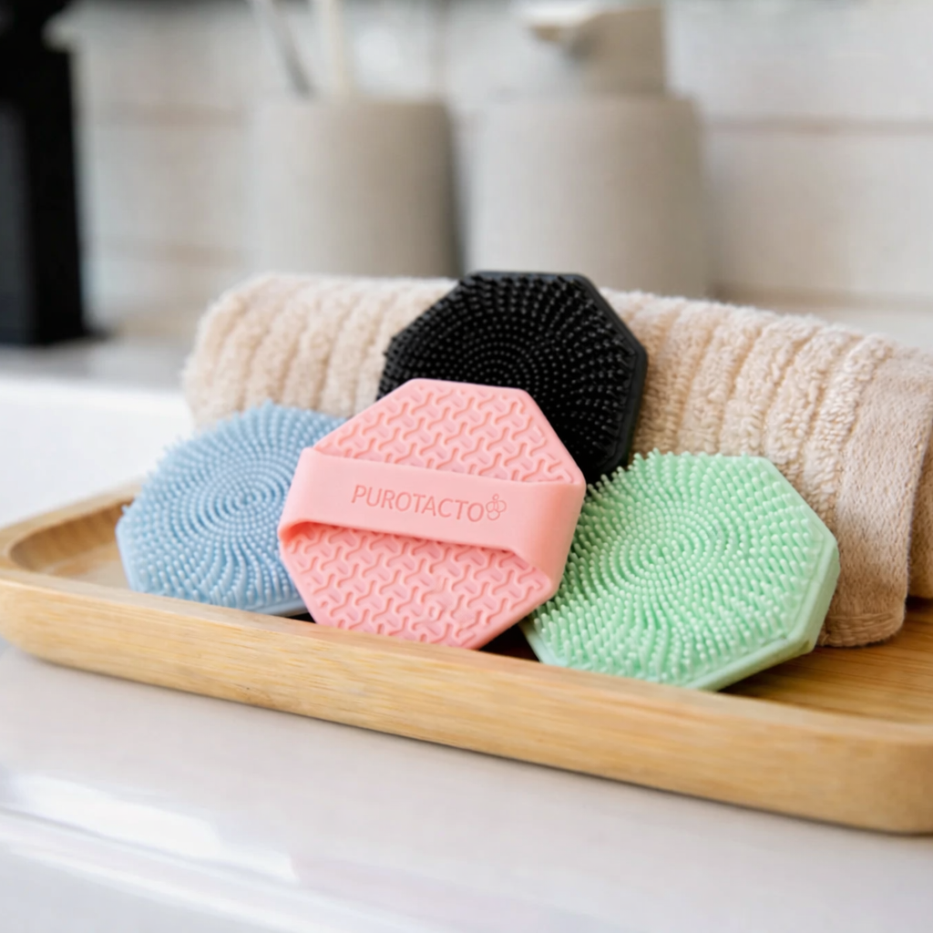 La silicona no es inherentemente antimicrobiana. Purotacto está fabricado con silicona de grado alimenticio, a la que se le añade plata y zinc durante el proceso de fabricación para ayudar a prevenir el crecimiento de bacterias y hongos en el propio exfoliante*. Sus exclusivas aletas exfoliantes son más suaves para la piel y proporcionan un masaje relajante sin igual.